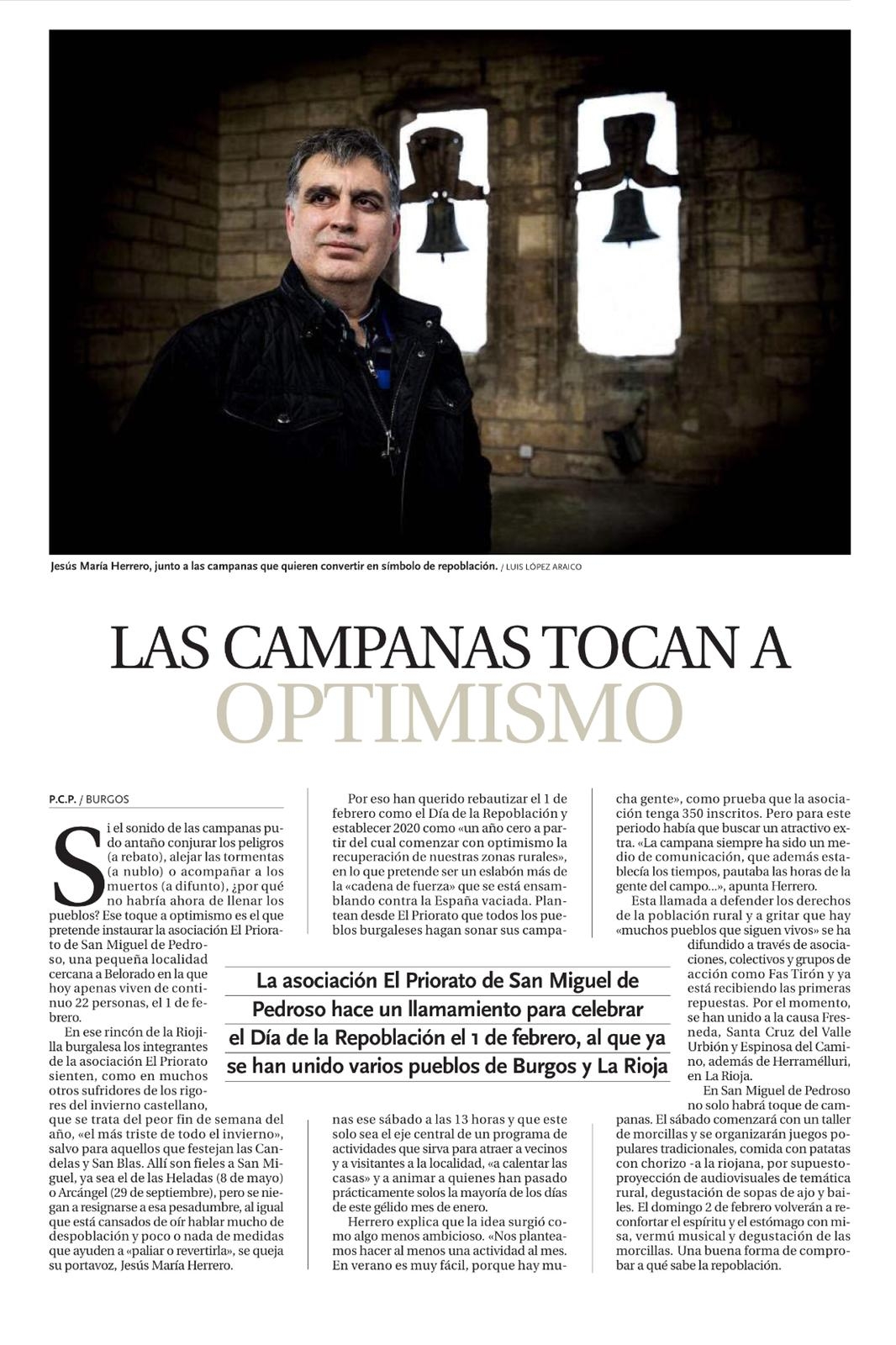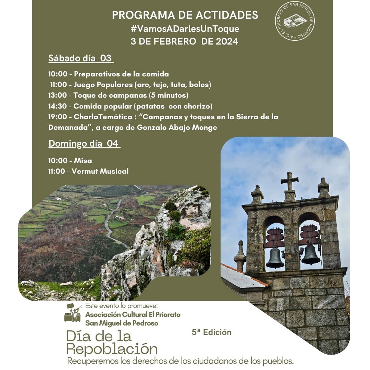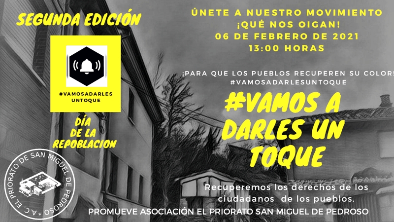 Ya en su sexta edición, la asociación cultural El Priorato, de San Miguel de Pedroso (BU), propone una "campanada general", entre otras actividades, para llamar la atención sobre las carencias del mundo rural. El motivo central es hacer coincidir todos los volteos de campana de la mayor cantidad de municipios posible, en la hora señalada, durante cinco minutos.