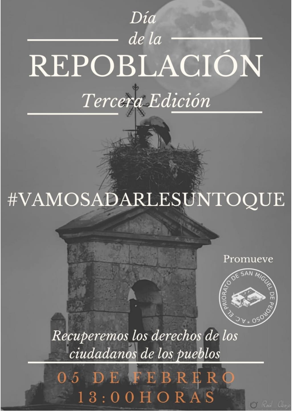 La Asociación Cultural y de Ocio “EL PRIORATO” de San Miguel de Pedroso, por tercer año consecutivo, lanza un llamamiento a todas esas personas que tienen sus raíces en las zonas rurales, para que el primer fin de semana de febrero retornen a esos núcleos de los que partieron y los pongan en valor, llenándolos de vida, y así, reivindicar la recuperación de estos lugares.