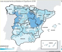 Figura 5. Mapa de las “Áreas Escasamente Pobladas” de España en el Informe del Defensor del Pueblo, pag. 89.